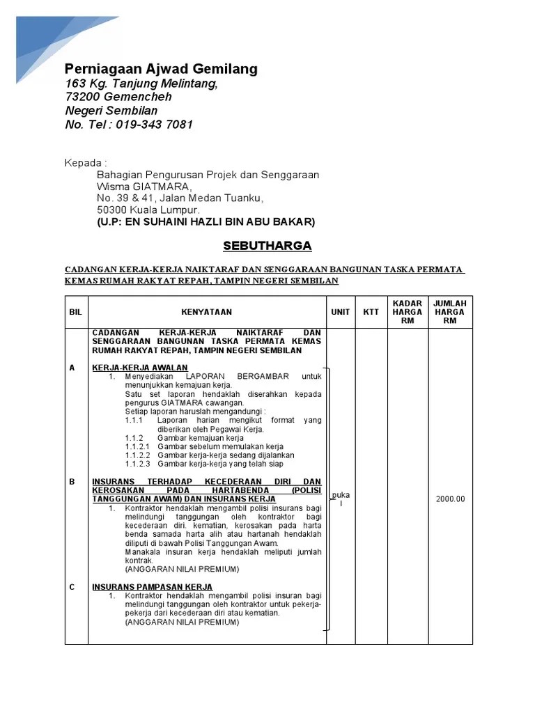 Polisi ini direka untuk memenuhi keperluan insurans ditetapkan kepada anda di bawah syarat kontrak. Takaful malaysia menyediakan pelan perlindungan yang ekstensif untuk memenuhi keperluan anda yang pelbagai. Insurans kerja projek ini perlu diambil oleh kontraktor sebelum memulakan sebarang projek. Nikmati liputan untuk kerosakan atau kerugian kerja kontrak & liabiliti kepada. Produk ini menyediakan perlindungan untuk kontraktor yang terlibat dalam industri pembinaan terhadap kerugian atau kerosakan akibat kemalangan yang tidak . Polisi ini direka untuk memenuhi keperluan insurans ditetapkan kepada kontraktor di bawah syarat kontrak. Perlindungan ini dikuatkuasa apabila kontrak diberikan kepada kontraktor. Bon pelaksanan merupakan satu bentuk kewangan yang perlu di sediakan oleh kontraktor sebagai jaminan kepada kontrak. P&o insurance juga menawarkan insurans indemniti profesional serta insurans untuk pembinaan/projek, kejuruteraan, marin dan pekerja.